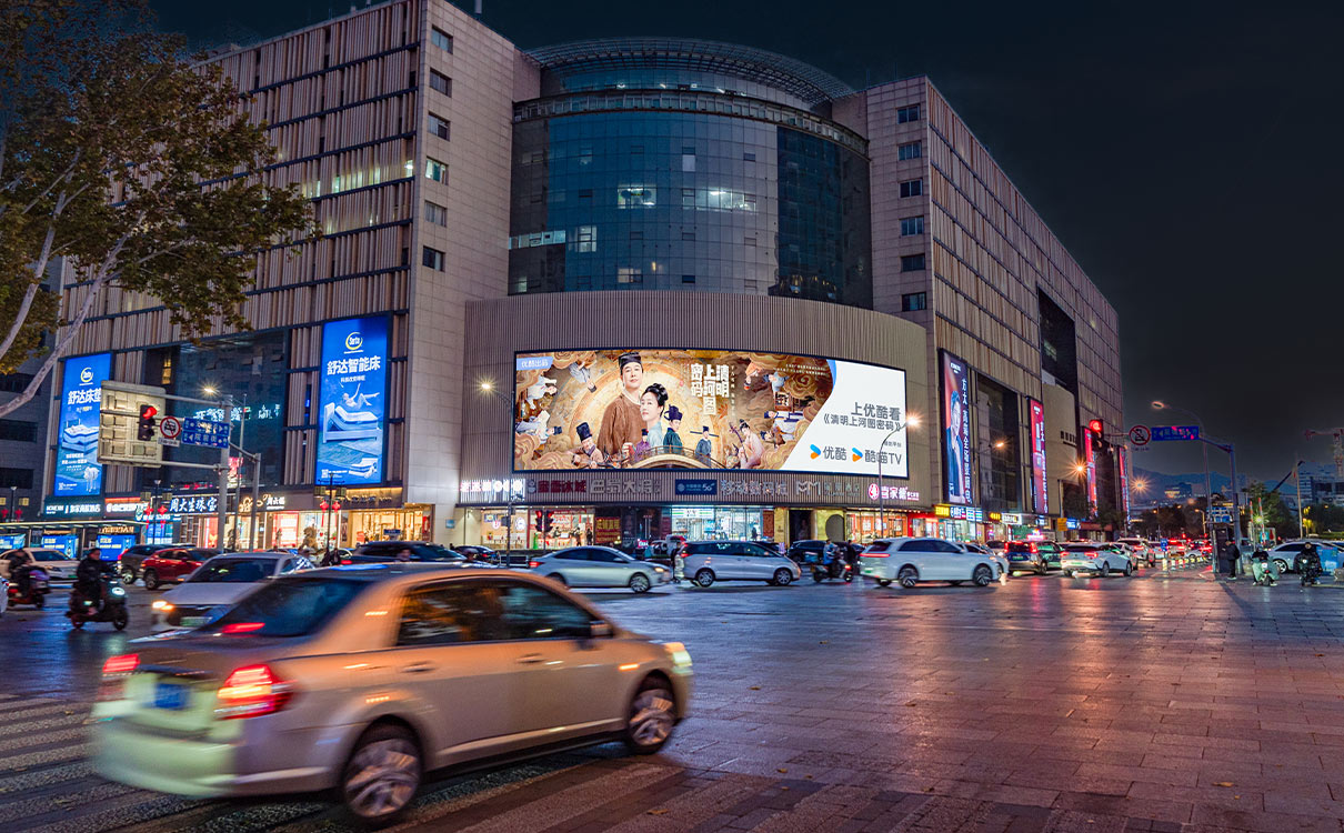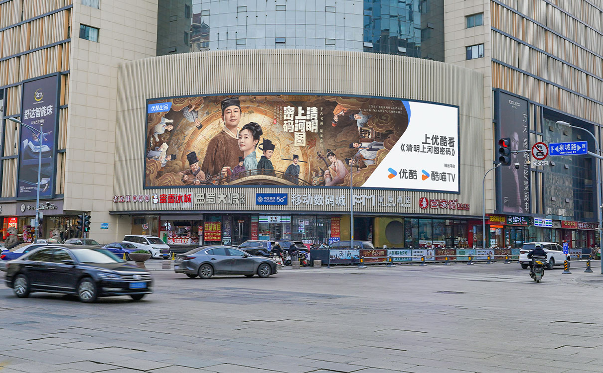 (齊魯國(guó)際大廈戶外LED屏 上刊品牌:優酷)